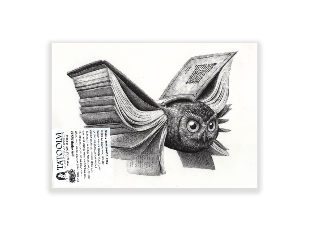 תעתוע קעקוע זמני גדול שחור לבן ינשוף כפניים ספר ספרות – makeup.land
