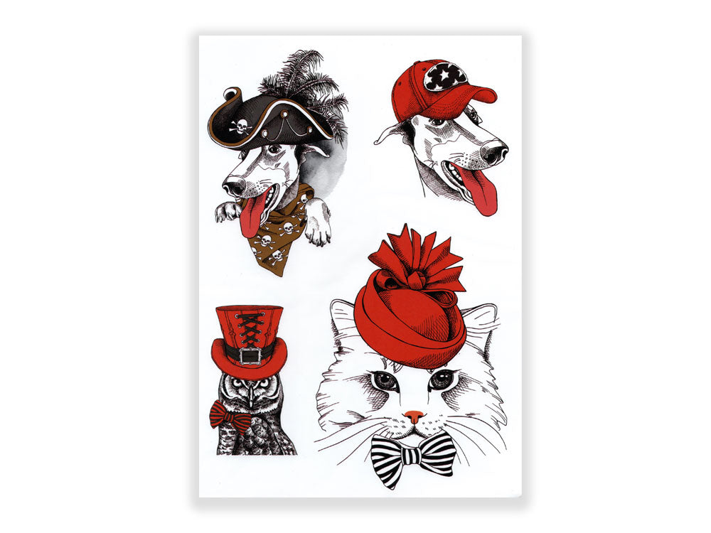 2-תעתוע קעקוע זמני גדול צבעוני ילדים מיקס קטנים חיות מחופשות כובעים
